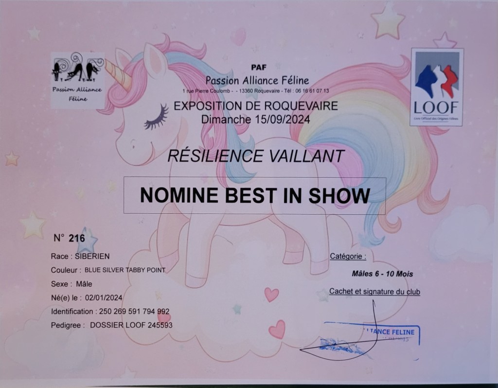 première exposition pour notre chaton Vaillant!